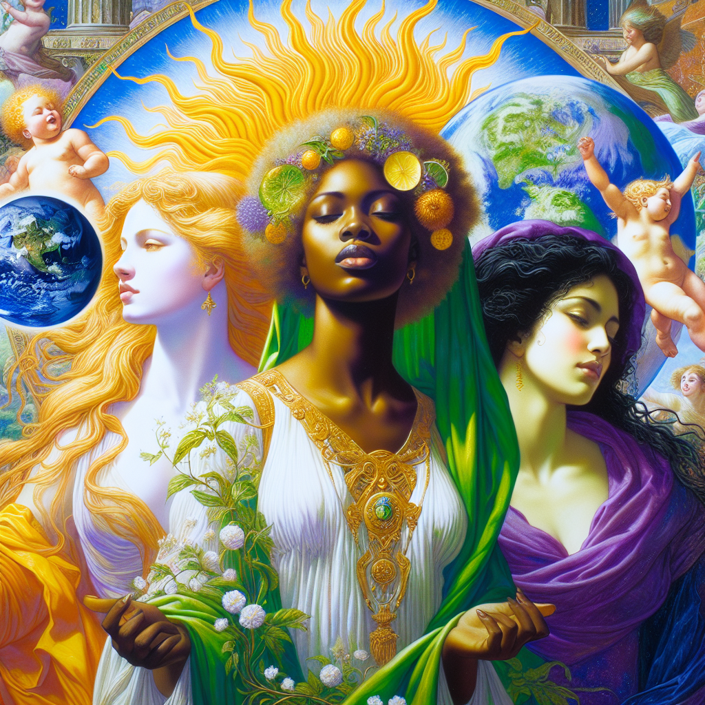 They were celestial beings. The sisters loved each other very much and happily played together for billions of years. But they eventually grew restless with feelings of discontent. They began to long for something meaningful to fill the emptiness they felt. As they grew and matured, the sisters decided that it was time for a change. They felt as though they needed to use their divine powers for something truly important, something that would give meaning to their existence. Together, they agreed to create humankind.